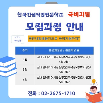 [공지] [독산본점 5월 개강] 실내인테리어시공실무(건축목공+창호시공)A2026.01.07 20 |
